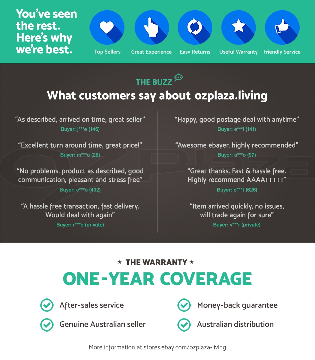 For your peace of mind, this product comes with a -year warranty. We value our customers and wish to make your purchase experience as enjoyable as possible. If something goes wrong with your product, please do not hesitate to contact us for assistance. Please for full terms and conditions that outline your warranty rights.