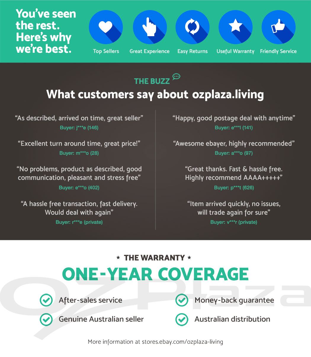 For your peace of mind, this product comes with a -year warranty. We value our customers and wish to make your purchase experience as enjoyable as possible. If something goes wrong with your product, please do not hesitate to contact us for assistance. Please for full terms and conditions that outline your warranty rights.