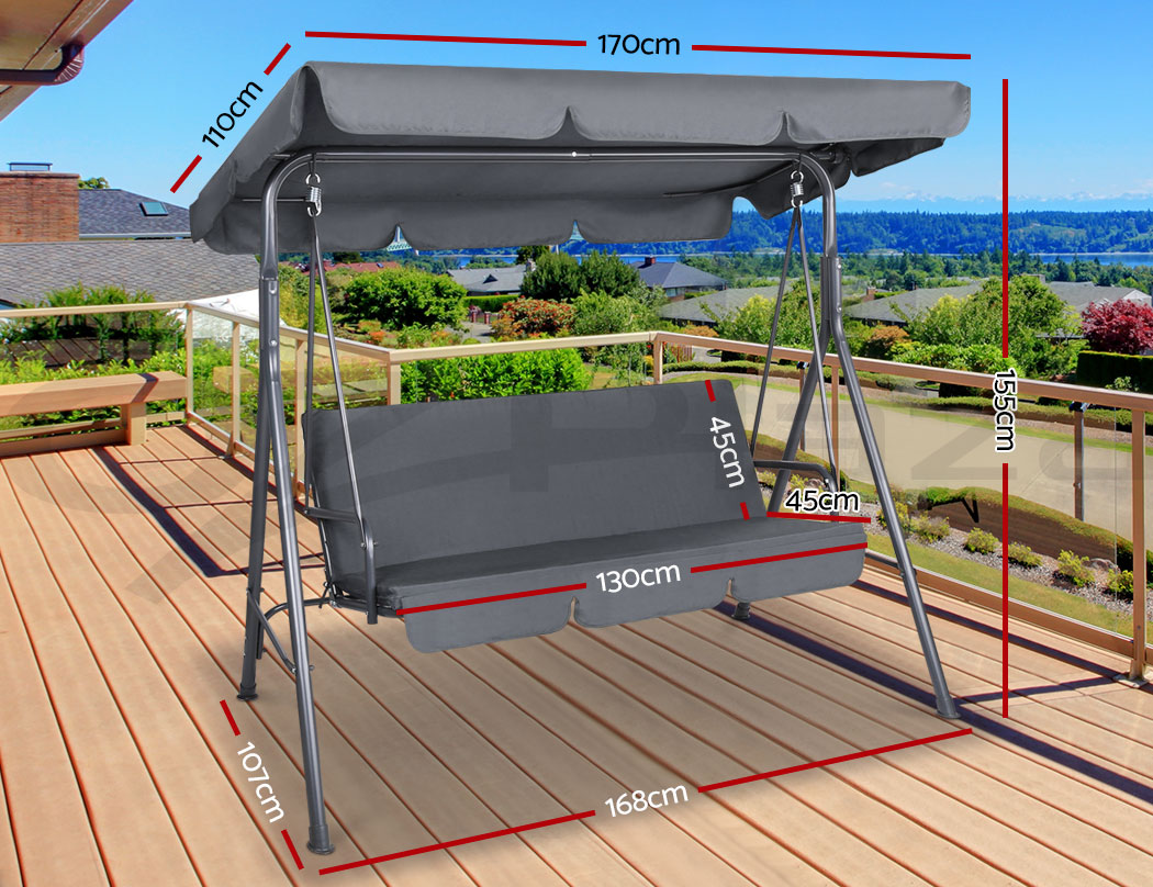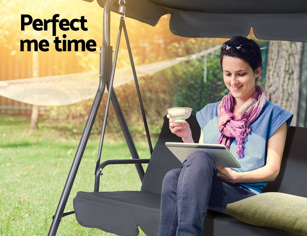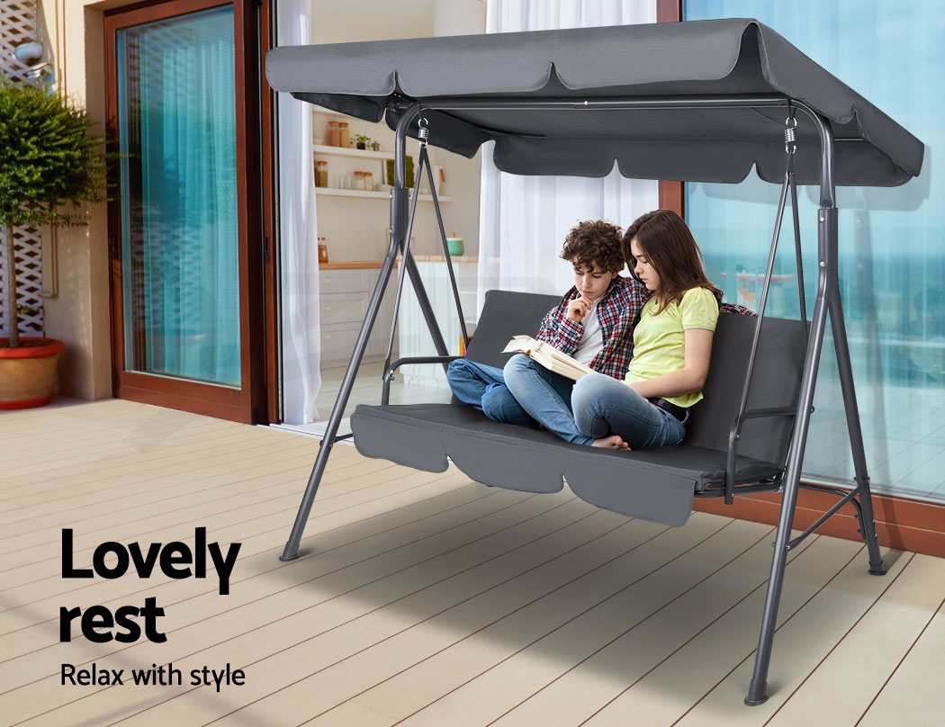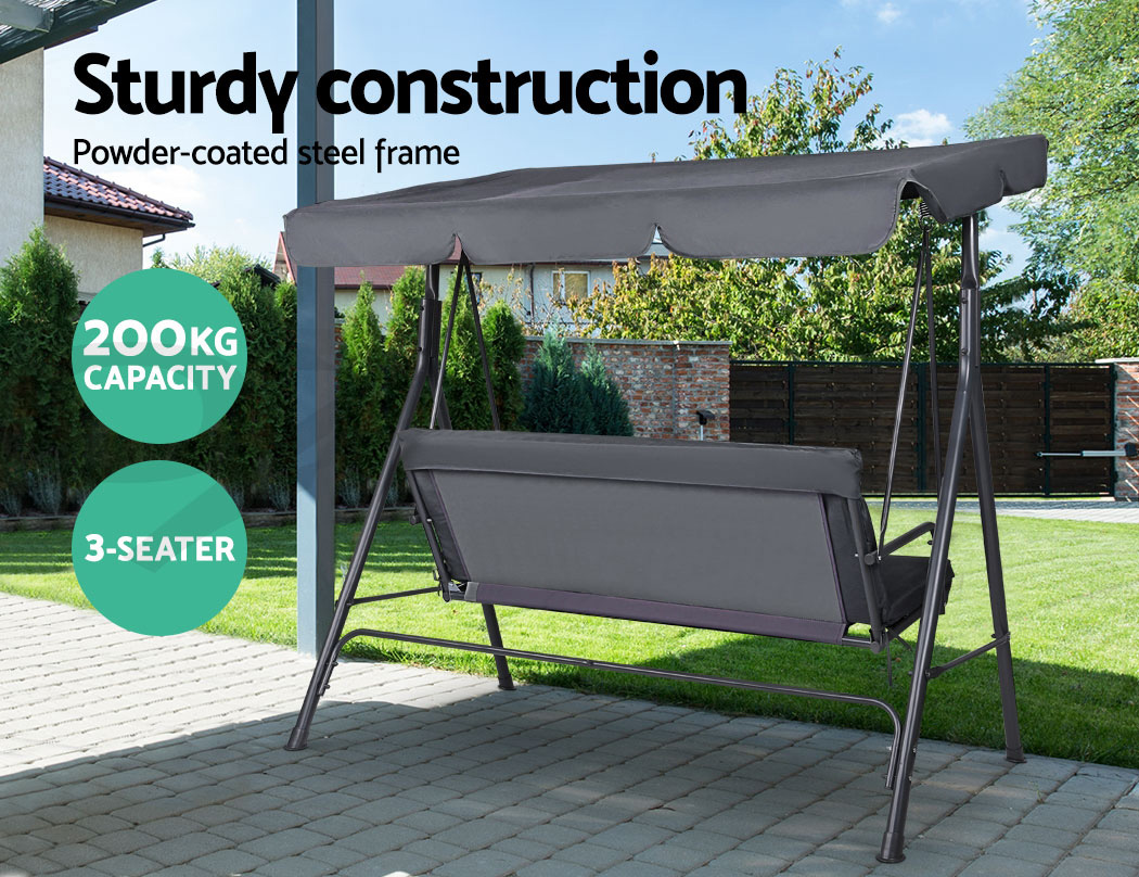 Gardeon Grey Outdoor Swing Chair - Stylish 3-Seater Garden Bench with Adjustable Canopy