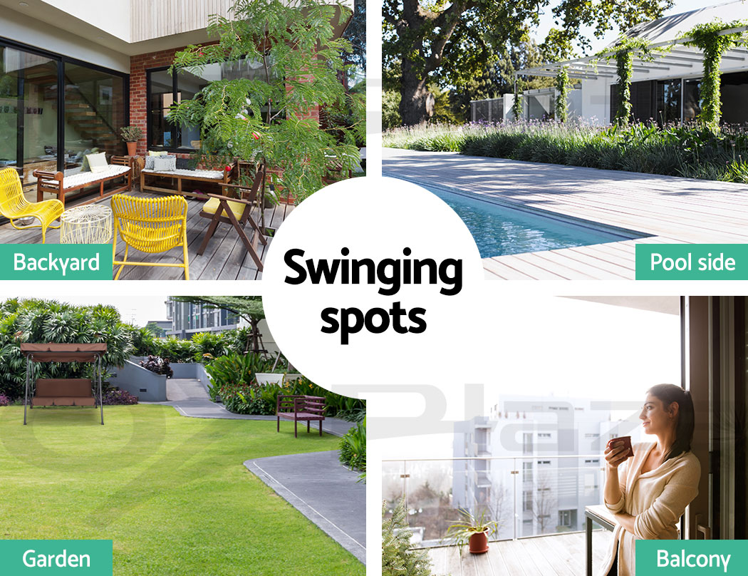 Enjoy a lazy afternoon swinging in the sun with the Gardeon Canopy Swing Chair. With ample space for three adults, the chair is perfect for having a chat with friends, reading your favourite book or just lounging the hours away.